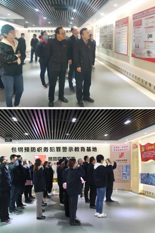 在廉政展厅,公司党总支书记黄绍东同志带领全体党员重温了入党誓词。展厅内以实物、图片、文字等多种形式,通过观看党的反腐历程、思想形成、严惩腐败、清风正气铸钢魂、廉政史鉴、惩治职务犯罪、算好人生“七笔帐”、案例警示等内容,系统回顾了中国共产党成立以来的反腐历程,特别是党的十八大以来全面推进从严治党、严惩腐败的坚定决心和有力举措,看到了包钢开展党风廉政建设和反腐败斗争、提升职务犯罪预防水平取得的成果。通过观看包钢警示教育宣传片,一段段声泪俱下的忏悔录和一则则真实鲜活、发人深省的反腐案例,用身边案身边事警示身边人,以案示警、以案明纪,使党员干部职工感受到强烈的心灵震撼和冲击,深刻领悟到“一失足成千古恨”,为党员干部提升廉洁从业定力起到了很好的警示教育作用,使干部职工知敬畏、存戒惧、守底线,树立了正确的权力观和利益观,敲响廉洁从业的警钟,更加深刻的认识到把好廉洁自律的总开关才是快速平稳、持续推进企业实现高质量发展的总防线。